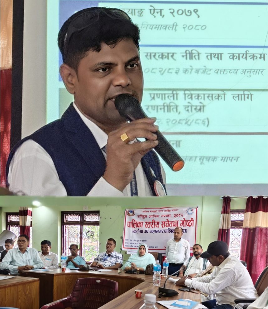 कलैया,२० चैत । राष्ट्रिय आर्थिक गणना २०८२ अन्तर्गत आज कलैया उप-महानगरपालिकामा पालिका स्तरीय सचेतना गोष्ठी सम्पन्न भएको छ। “अर्थतन्त्र मापनका…