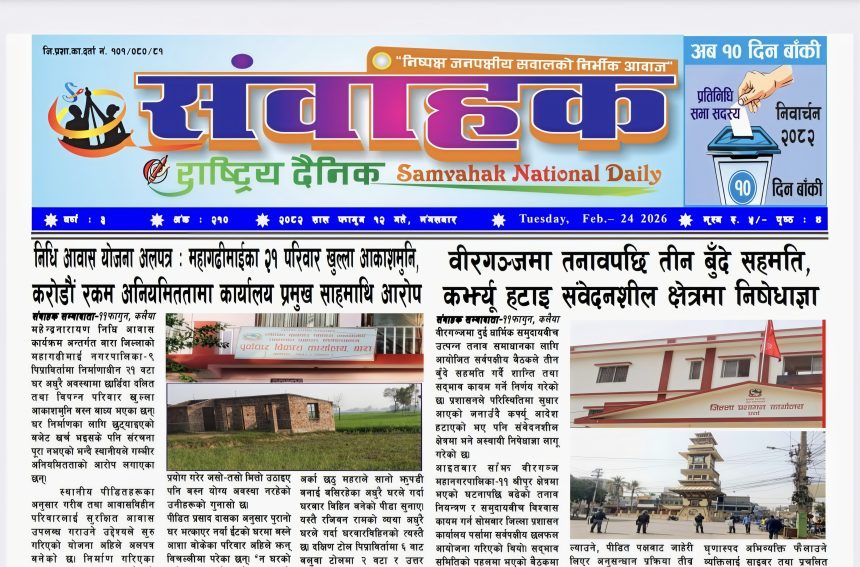 इ पेपर संवाहक राष्ट्रिय दैनिक – ईपेपर-२०८२ फागुन १२ गते दाश पन्न्नालाल २०८२, ११ फाल्गुन सोमबार २३:४९ 234 Views Share SHARE https://drive.google.com/file/d/12ej0csY4VZeos7tXdWcv8kJ9eqfvbBo7/view?usp=drivesdk प्रतिक्रिया दाश पन्न्नालाल २०८२, ११ फाल्गुन सोमबार २३:४९ २०८२, ११ फाल्गुन सोमबार २३:४९ Share This Article फेसबुक ट्विटर प्रतिलिपी गर्नुहोस प्रीन्ट ताजा अपडेट संवाहक राष्ट्रिय दैनिक ~ ई- पेपर ~ आज मिति २०८३ बैशाख ३ गते प्रकाशित ई- पेपर संवाहक राष्ट्रिय दैनिक ~ ई- पेपर~ आज मिति २०८३ बैशाख २ गते प्रकाशित इ पेपर संवाहक राष्ट्रिय दैनिक ~ई- पेपर~ आज मिति २०८३ बैशाख १ गते प्रकाशित ई- पेपर संवाहक राष्ट्रिय दैनिक ~ई- पेपर~ मिति २०८२ चैत्र ३० गते प्रकाशित ई- पेपर केपी ओली र लेखक १३ दिनपछि हिरासतमुक्त राजनीति राष्ट्रिय समाचार हेडलाईन कलैया जेलको जग्गामा सिडियोको कडा एक्सन ! प्रशासन समाचार हेडलाईन संवाहक राष्ट्रिय दैनिक ~ ई- पेपर~ मिति २०८२ चैत्र २६ गते प्रकाशित ई- पेपर