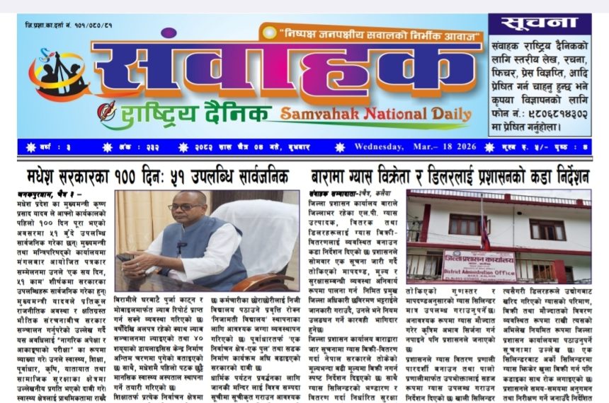 ई- पेपर संवाहक राष्ट्रिय दैनिक ~ ई-पेपर~ २०८२ चैत्र ४ गते दाश पन्न्नालाल २०८२, ४ चैत्र बुधबार ०८:०५ 123 Views Share SHARE यहाँ बाट डाउनलोड गर्नुहोस् ।232 प्रतिक्रिया दाश पन्न्नालाल २०८२, ४ चैत्र बुधबार ०८:०५ २०८२, ४ चैत्र बुधबार ०८:०५ Share This Article फेसबुक ट्विटर प्रतिलिपी गर्नुहोस प्रीन्ट ताजा अपडेट संवाहक राष्ट्रिय दैनिक ~ ई- पेपर ~ आज मिति २०८३ बैशाख ३ गते प्रकाशित ई- पेपर संवाहक राष्ट्रिय दैनिक ~ ई- पेपर~ आज मिति २०८३ बैशाख २ गते प्रकाशित इ पेपर संवाहक राष्ट्रिय दैनिक ~ई- पेपर~ आज मिति २०८३ बैशाख १ गते प्रकाशित ई- पेपर संवाहक राष्ट्रिय दैनिक ~ई- पेपर~ मिति २०८२ चैत्र ३० गते प्रकाशित ई- पेपर केपी ओली र लेखक १३ दिनपछि हिरासतमुक्त राजनीति राष्ट्रिय समाचार हेडलाईन कलैया जेलको जग्गामा सिडियोको कडा एक्सन ! प्रशासन समाचार हेडलाईन संवाहक राष्ट्रिय दैनिक ~ ई- पेपर~ मिति २०८२ चैत्र २६ गते प्रकाशित ई- पेपर