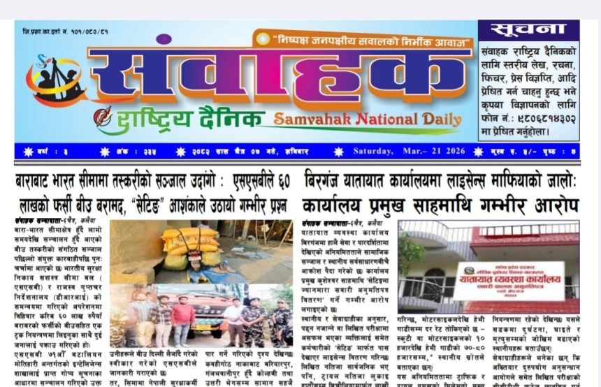 संवाहक राष्ट्रिय दैनिक~ ई-पेपर~ २०८२ चैत्र ७ गते