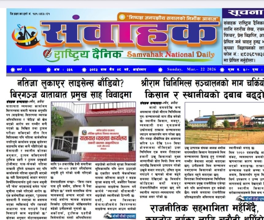 संवाहक राष्ट्रिय दैनिक ~ई-पेपर~ २०८२ चैत्र ८ गते