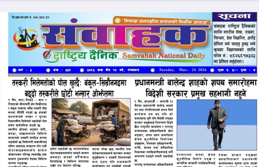 ई- पेपर संवाहक राष्ट्रिय दैनिक ~ई- पेपर~ २०८२ चैत्र १० गते दाश पन्न्नालाल २०८२, १० चैत्र मंगलवार ०६:५८ 70 Views Share SHARE यहाँ बाट डाउनलोड गर्नुहोस् ।238-1 प्रतिक्रिया दाश पन्न्नालाल २०८२, १० चैत्र मंगलवार ०६:५८ २०८२, १० चैत्र मंगलवार ०६:५८ Share This Article फेसबुक ट्विटर प्रतिलिपी गर्नुहोस प्रीन्ट ताजा अपडेट संवाहक राष्ट्रिय दैनिक ~ ई- पेपर ~ आज मिति २०८३ बैशाख ३ गते प्रकाशित ई- पेपर संवाहक राष्ट्रिय दैनिक ~ ई- पेपर~ आज मिति २०८३ बैशाख २ गते प्रकाशित इ पेपर संवाहक राष्ट्रिय दैनिक ~ई- पेपर~ आज मिति २०८३ बैशाख १ गते प्रकाशित ई- पेपर संवाहक राष्ट्रिय दैनिक ~ई- पेपर~ मिति २०८२ चैत्र ३० गते प्रकाशित ई- पेपर केपी ओली र लेखक १३ दिनपछि हिरासतमुक्त राजनीति राष्ट्रिय समाचार हेडलाईन कलैया जेलको जग्गामा सिडियोको कडा एक्सन ! प्रशासन समाचार हेडलाईन संवाहक राष्ट्रिय दैनिक ~ ई- पेपर~ मिति २०८२ चैत्र २६ गते प्रकाशित ई- पेपर