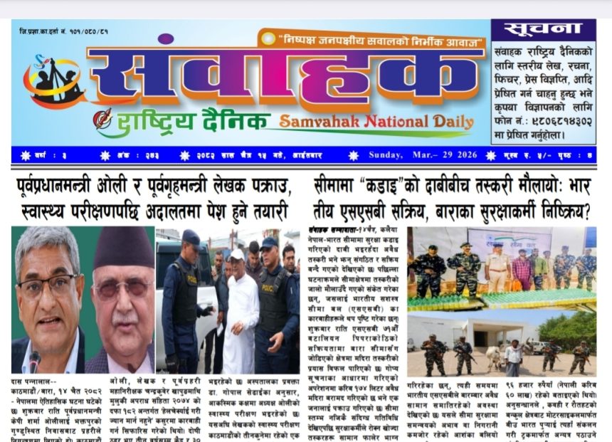 ई- पेपर संवाहक राष्ट्रिय दैनिक ~ ई- पेपर~ मिति २०८२ चैत्र १५ गते दाश पन्न्नालाल २०८२, १५ चैत्र आईतवार ०७:३२ 122 Views Share SHARE यहाँ बाट डाउनलोड गर्नुहोस् ।243-3 (2) प्रतिक्रिया दाश पन्न्नालाल २०८२, १५ चैत्र आईतवार ०७:३२ २०८२, १५ चैत्र आईतवार ०७:३२ Share This Article फेसबुक ट्विटर प्रतिलिपी गर्नुहोस प्रीन्ट ताजा अपडेट संवाहक राष्ट्रिय दैनिक ~ ई- पेपर ~ आज मिति २०८३ बैशाख ३ गते प्रकाशित ई- पेपर संवाहक राष्ट्रिय दैनिक ~ ई- पेपर~ आज मिति २०८३ बैशाख २ गते प्रकाशित इ पेपर संवाहक राष्ट्रिय दैनिक ~ई- पेपर~ आज मिति २०८३ बैशाख १ गते प्रकाशित ई- पेपर संवाहक राष्ट्रिय दैनिक ~ई- पेपर~ मिति २०८२ चैत्र ३० गते प्रकाशित ई- पेपर केपी ओली र लेखक १३ दिनपछि हिरासतमुक्त राजनीति राष्ट्रिय समाचार हेडलाईन कलैया जेलको जग्गामा सिडियोको कडा एक्सन ! प्रशासन समाचार हेडलाईन संवाहक राष्ट्रिय दैनिक ~ ई- पेपर~ मिति २०८२ चैत्र २६ गते प्रकाशित ई- पेपर