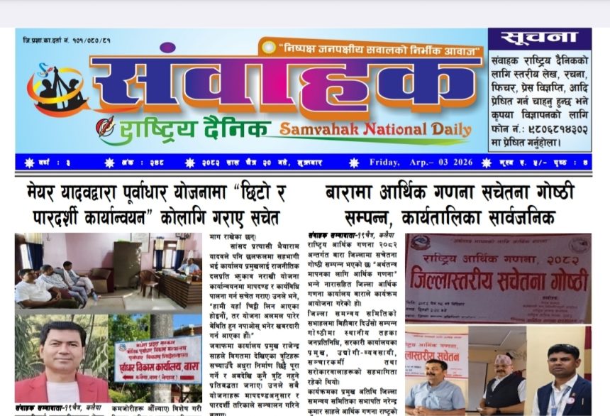 ई- पेपर संवाहक राष्ट्रिय दैनिक ~ ई- पेपर~ मिति २०८२ चैत्र २० गते दाश पन्न्नालाल २०८२, २० चैत्र शुक्रबार ०७:४३ 104 Views Share SHARE यहाँ बाट डाउनलोड गर्नुहोस् ।248-1 प्रतिक्रिया दाश पन्न्नालाल २०८२, २० चैत्र शुक्रबार ०७:४३ २०८२, २० चैत्र शुक्रबार ०७:४३ Share This Article फेसबुक ट्विटर प्रतिलिपी गर्नुहोस प्रीन्ट ताजा अपडेट संवाहक राष्ट्रिय दैनिक ~ ई- पेपर ~ आज मिति २०८३ बैशाख ३ गते प्रकाशित ई- पेपर संवाहक राष्ट्रिय दैनिक ~ ई- पेपर~ आज मिति २०८३ बैशाख २ गते प्रकाशित इ पेपर संवाहक राष्ट्रिय दैनिक ~ई- पेपर~ आज मिति २०८३ बैशाख १ गते प्रकाशित ई- पेपर संवाहक राष्ट्रिय दैनिक ~ई- पेपर~ मिति २०८२ चैत्र ३० गते प्रकाशित ई- पेपर केपी ओली र लेखक १३ दिनपछि हिरासतमुक्त राजनीति राष्ट्रिय समाचार हेडलाईन कलैया जेलको जग्गामा सिडियोको कडा एक्सन ! प्रशासन समाचार हेडलाईन संवाहक राष्ट्रिय दैनिक ~ ई- पेपर~ मिति २०८२ चैत्र २६ गते प्रकाशित ई- पेपर